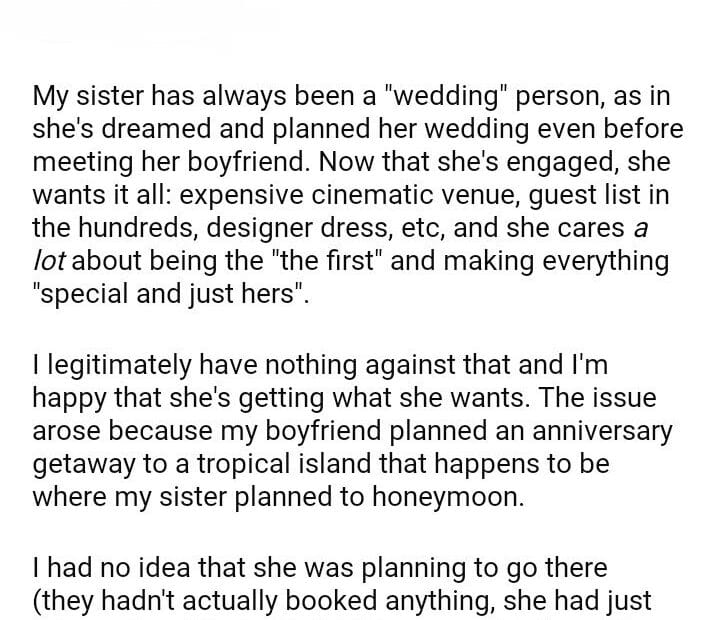 AITA for vacationing at my sister’s dream honeymoon destination?