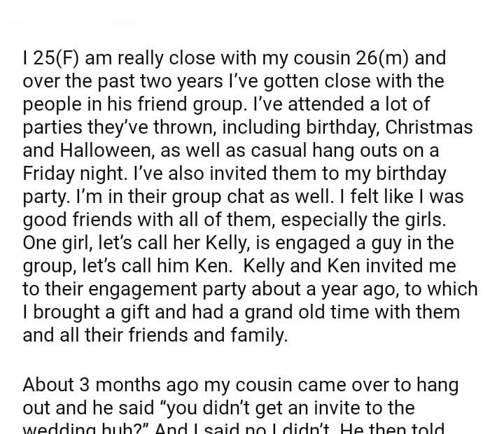 AITA if I don’t attend a wedding as a plus one because I didn’t get my own invite?