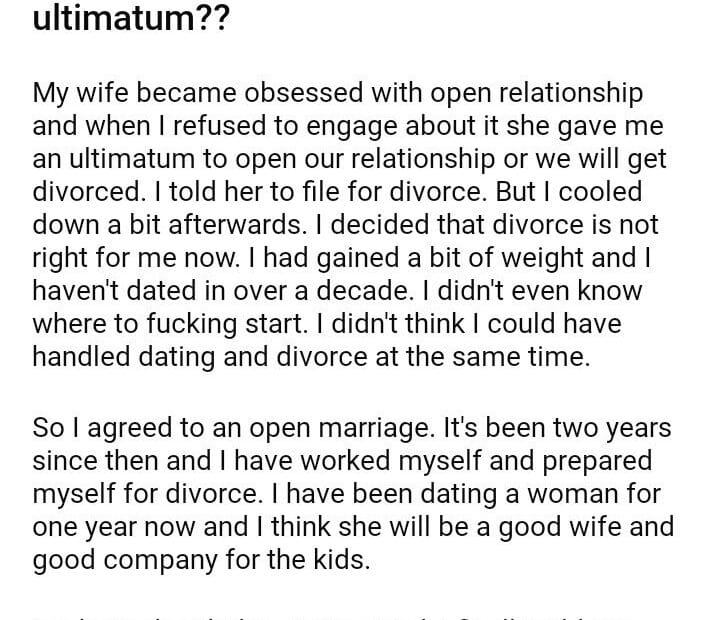 AITAH for finding a new wife after my wife gave me ultimatum