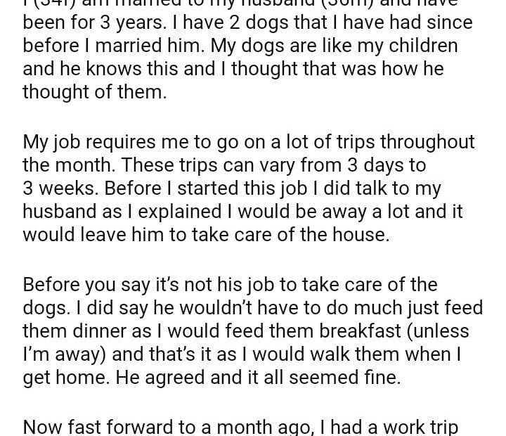 Aita for divorcing my husband for leaving my dogs outside
