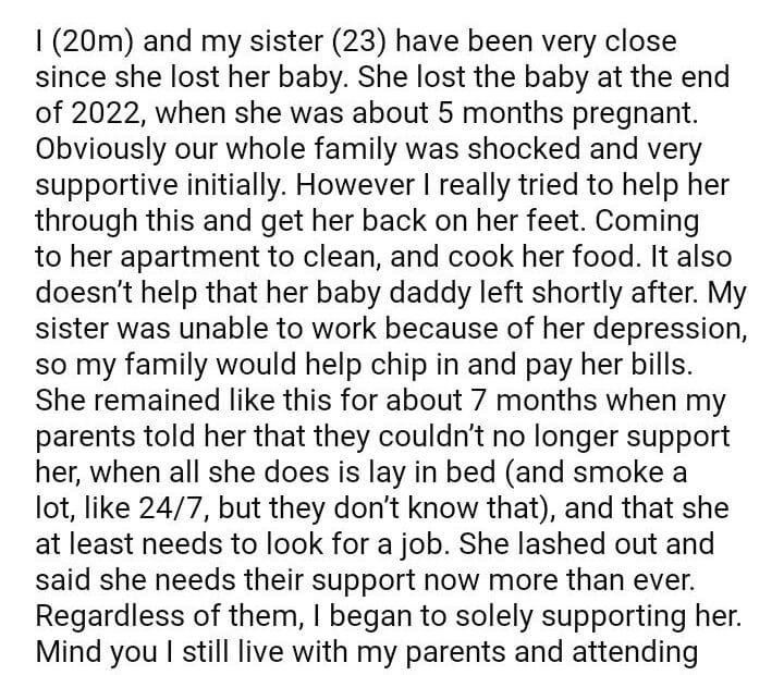 AITA for telling my sister that idc about the baby she lost