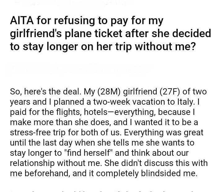 AITA for refusing to pay for my girlfriend’s plane ticket