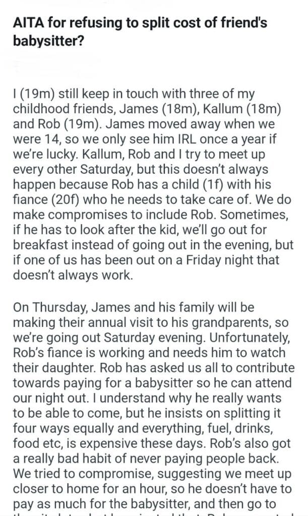 cost of friend’s babysitter