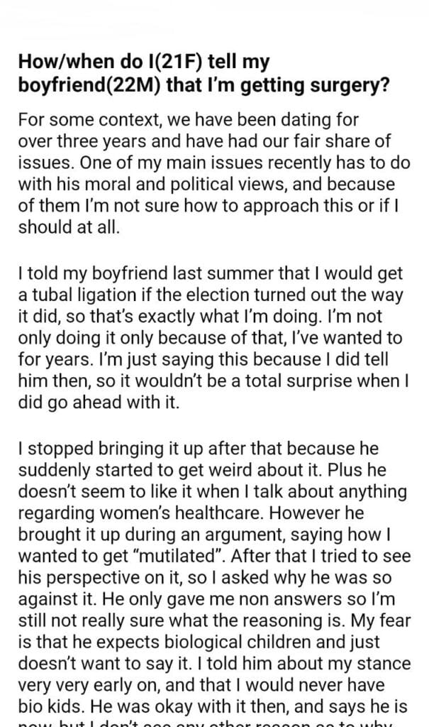 How/when do I(21F) tell my boyfriend(22M)