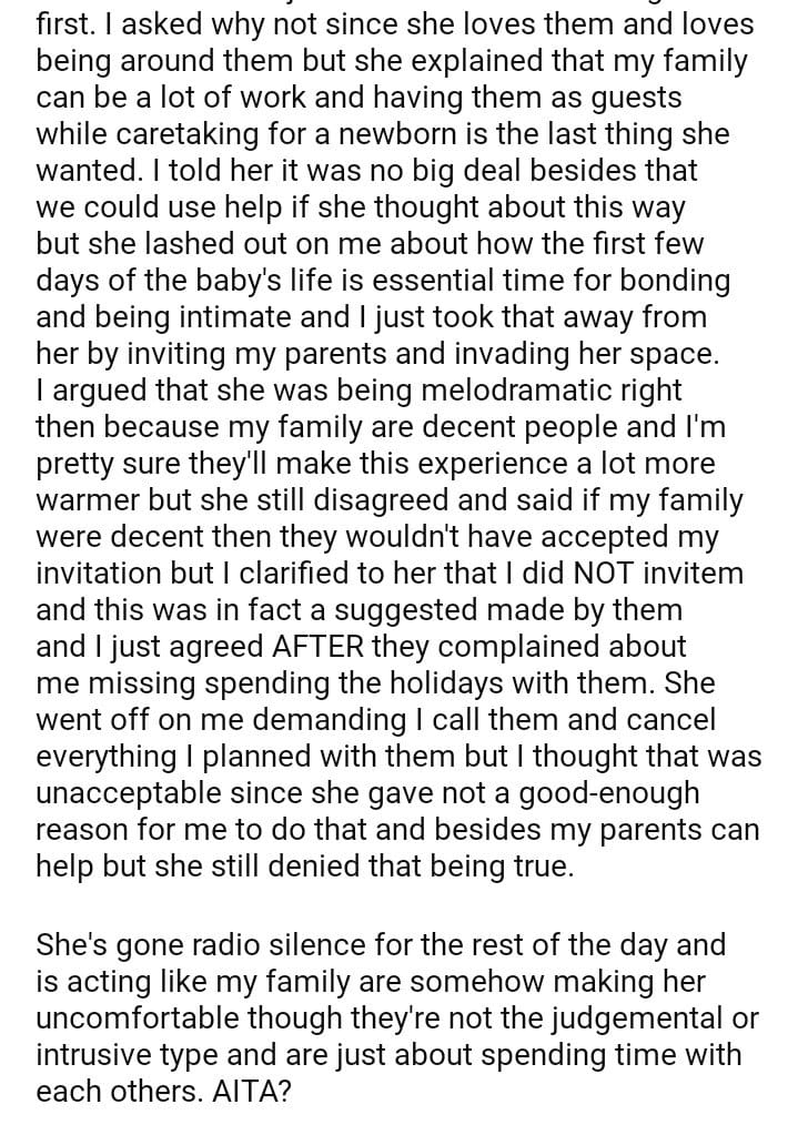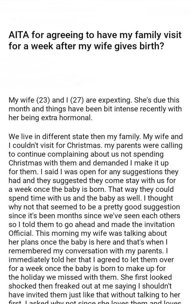 my family visit for a week after my wife gives birth?