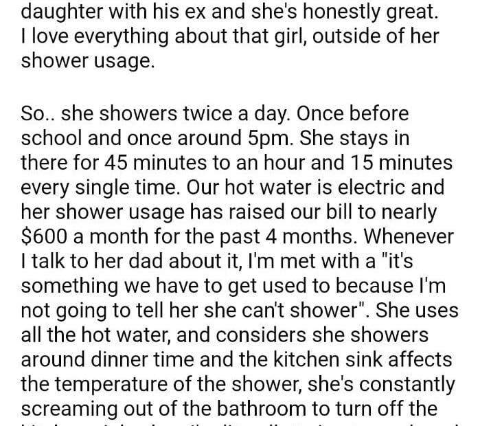 AITA for my step daughters shower usage?