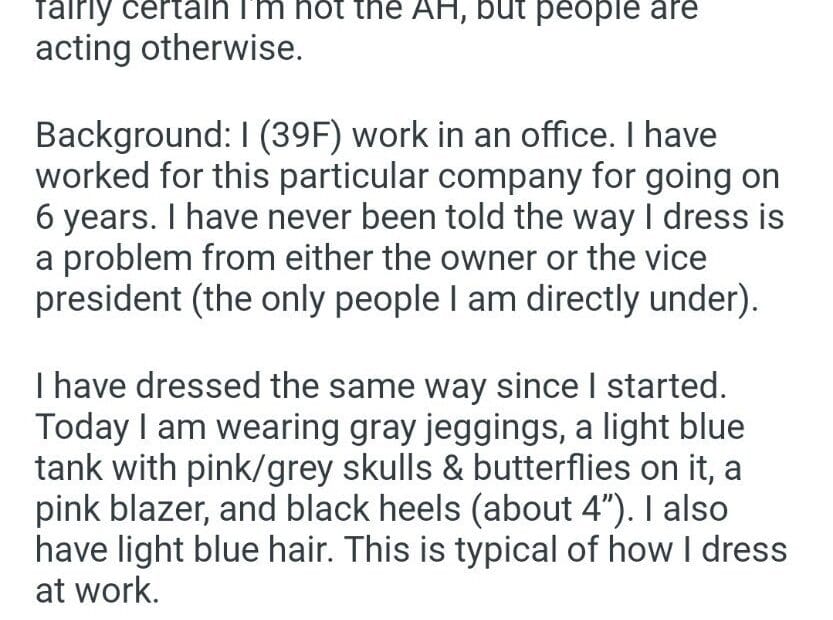 AITA for the way I dress in the office