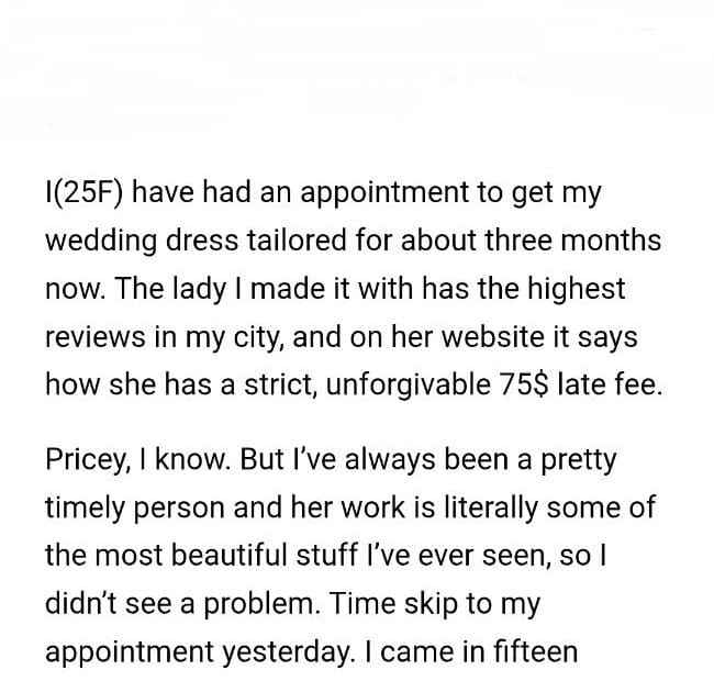 AITA for the late fee to my tailor?