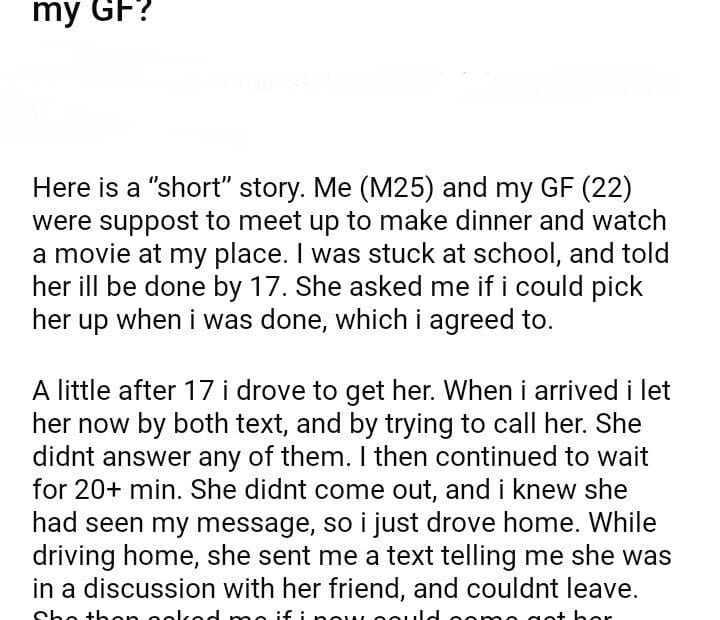 AITA for driving of and not waiting for my GF?