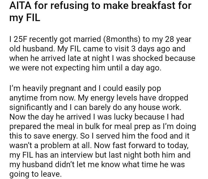 AITA for refusing to make breakfast for my FIL