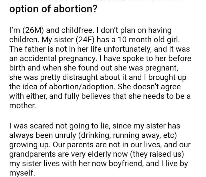 AITAH for telling my sister that it was her choice to be a mother