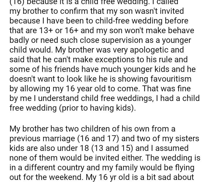 AITA for not going to my brothers child-free wedding because my son wasnt invited (and his cousins were)?February 21, 2024February 21, 2024AITA