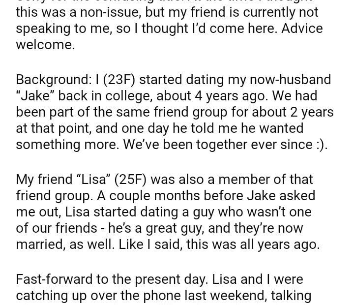 AITAH for saying “that’s funny” when my friend (25F) told me (23F) that my husband (23M) used to have a crush on her?February 22, 2024February 22, 2024AITA