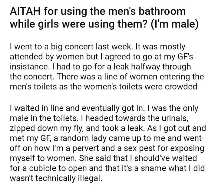 AITAH for using the men’s bathroom while girls were using them? (I’m male)February 22, 2024February 22, 2024AITA