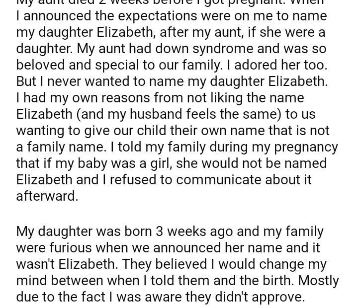 AITA for arguing back when my parents were disappointed I didn’t name my daughter after my late aunt?February 23, 2024February 23, 2024AITA