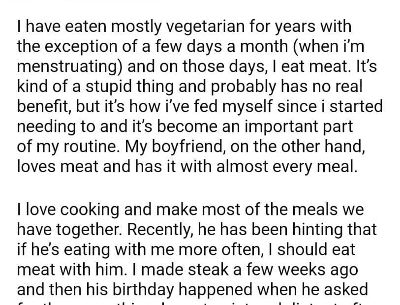 AITA for when cooking for two people?