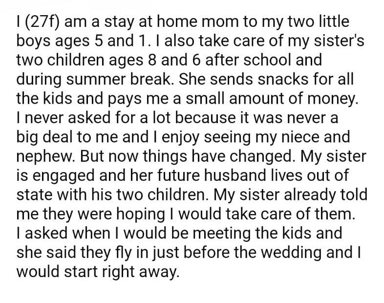AITA for my sister future stepkids