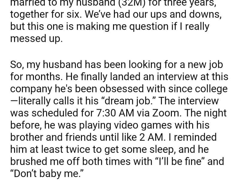 AITA for my husband job interview?