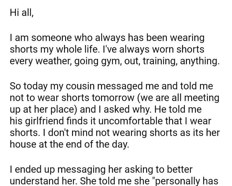 AITA for what I shouldn’t wear shorts