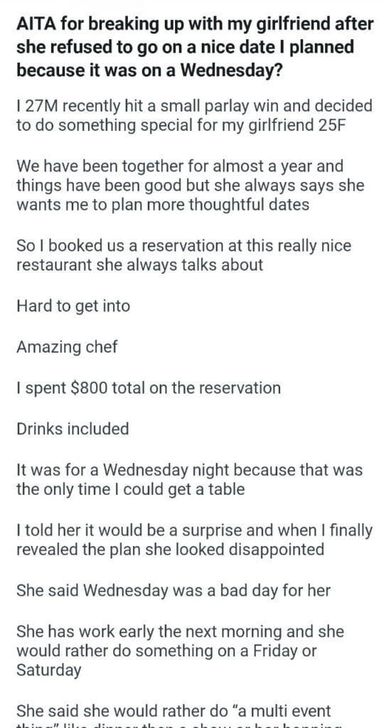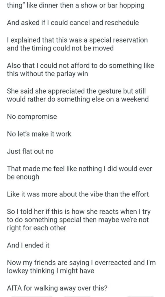 she refused to go on a nice date I planned