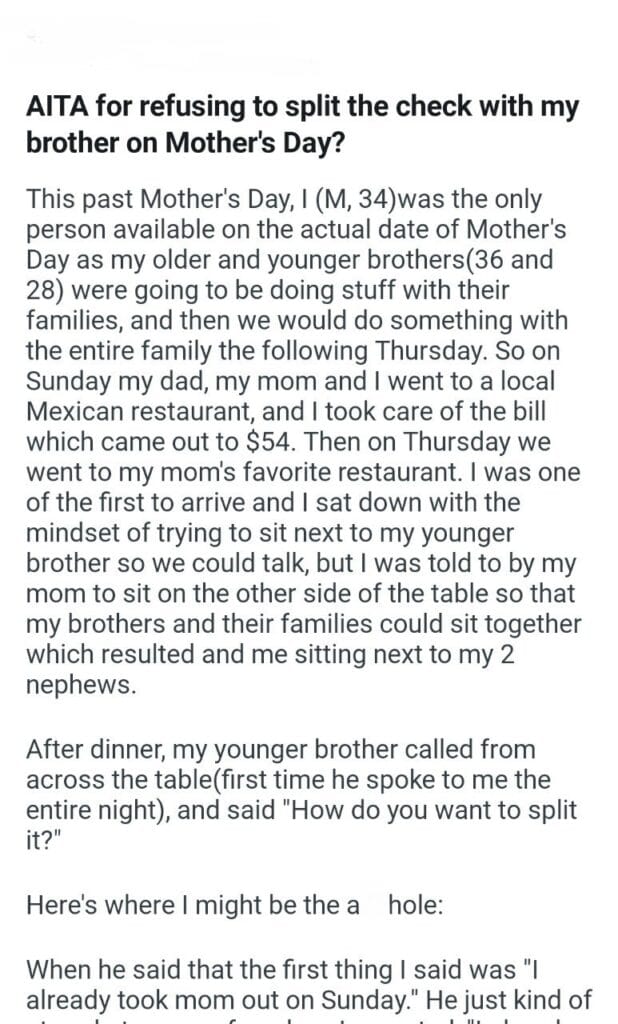 split the check with my brother