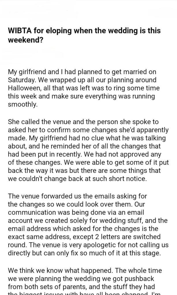 when the wedding is this weekend?