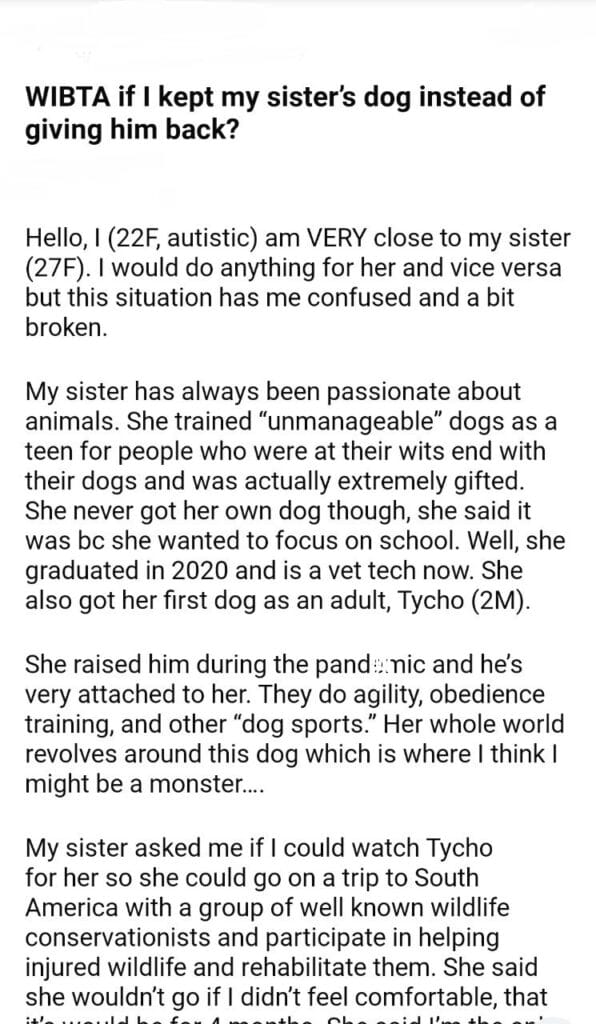 WIBTA for my sister’s dog