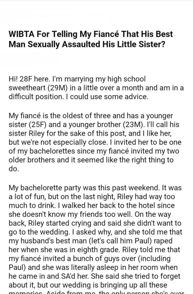 WIBTA For Telling My Fiancé What His Best Man Did