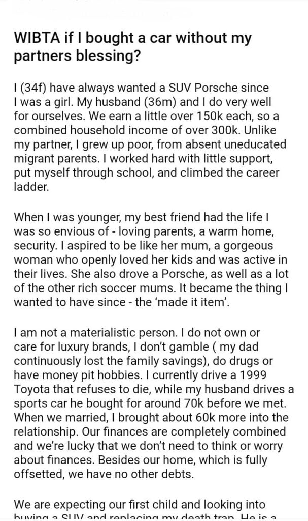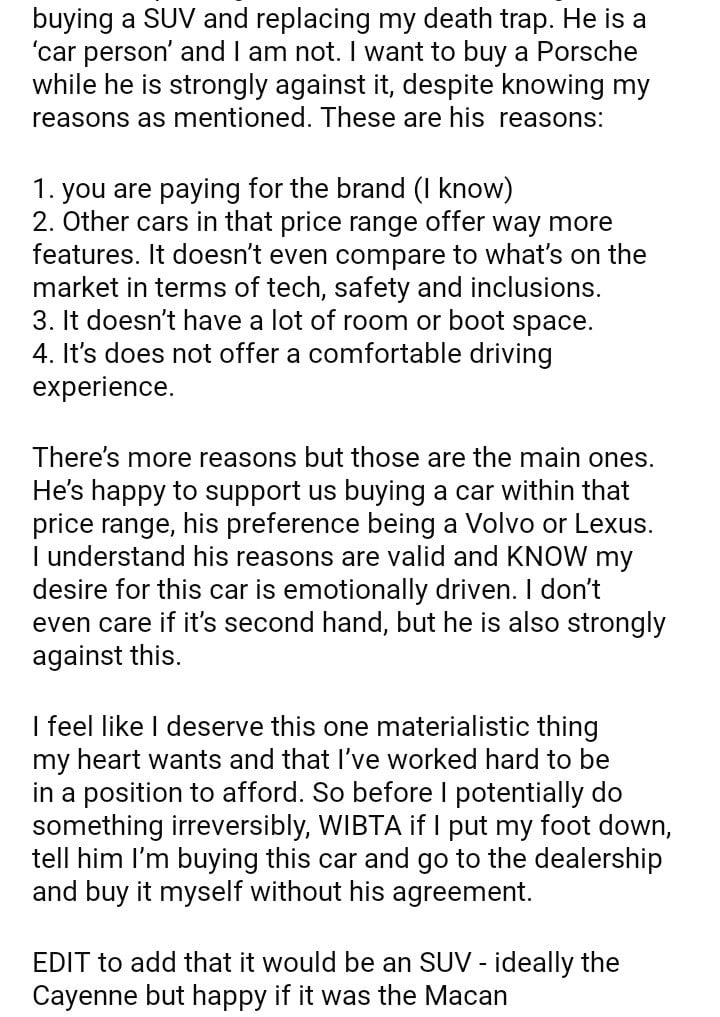 WIBTA if I bought a car without my partners blessing?