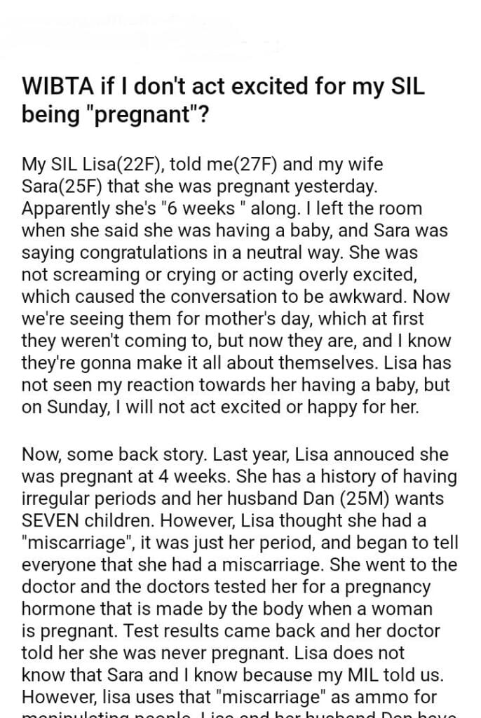 WIBTA if I don’t act excited for my SIL being “pregnant”?