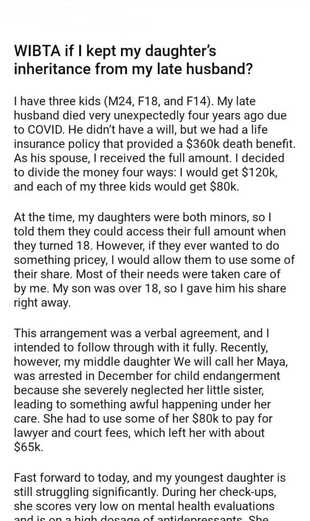WIBTA if I kept my daughter’s inheritance from my late husband?