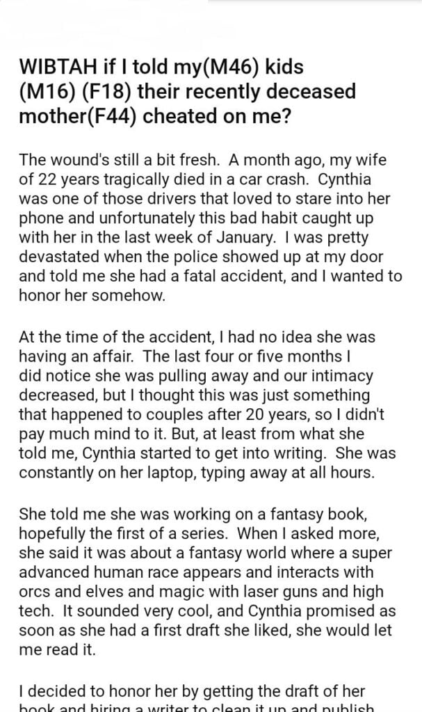 WIBTAH If I Told My Kids Their Mother Cheated On Me